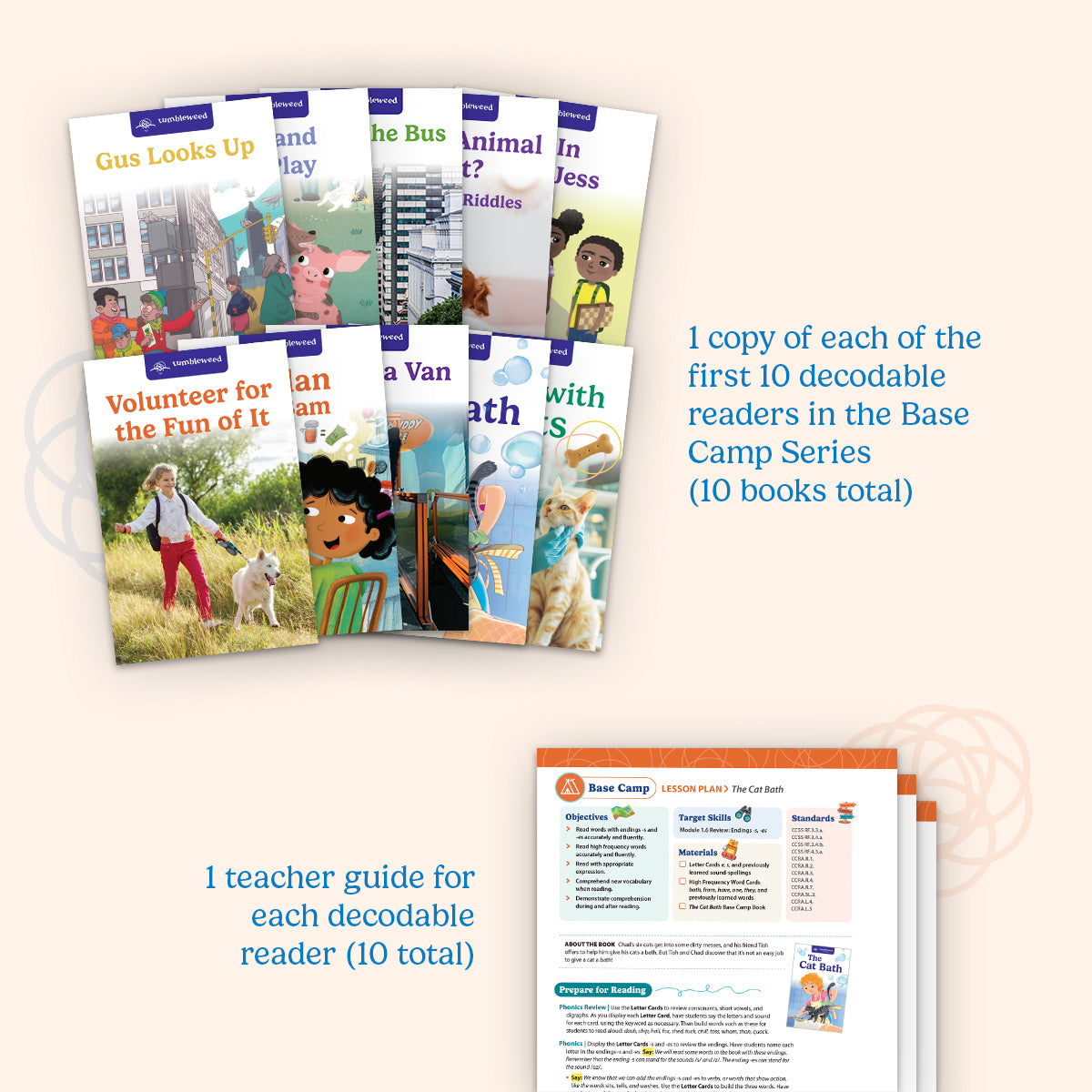- 1 copy of each of the first 10 decodable readers in the Base Camp Series